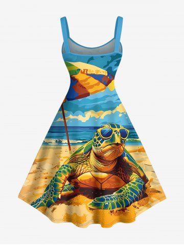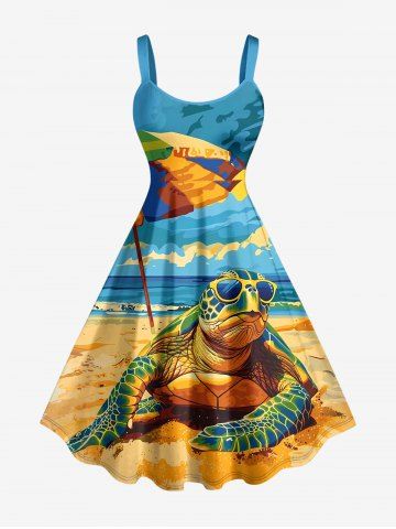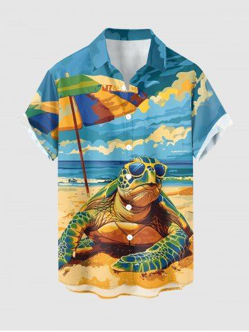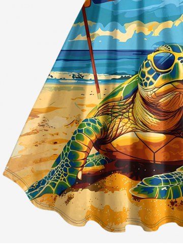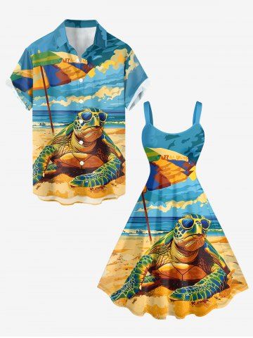 Matching Hawaiian Outfits > Sky Sea Sunshade Turtle Print Plus Size Matching Hawaii Beach Outfit For Couples