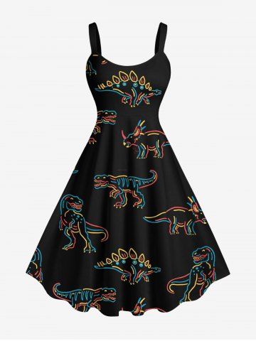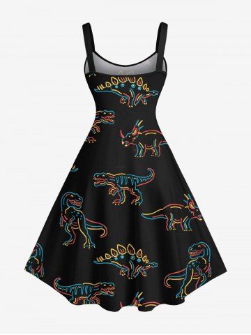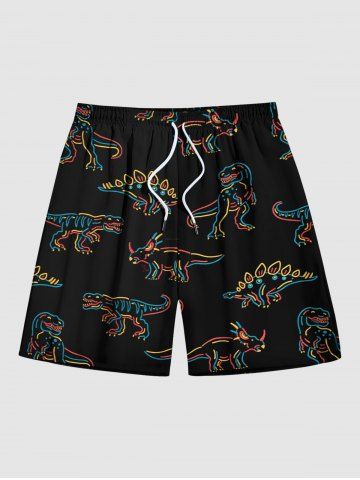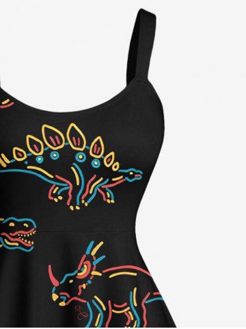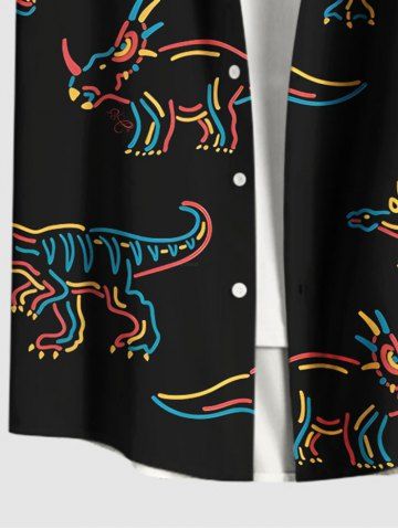 Stick Figure Dinosaur Print Plus Size Matching Hawaii Beach Outfit For Couples - Black
