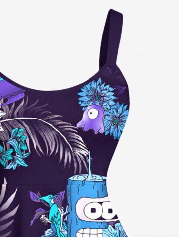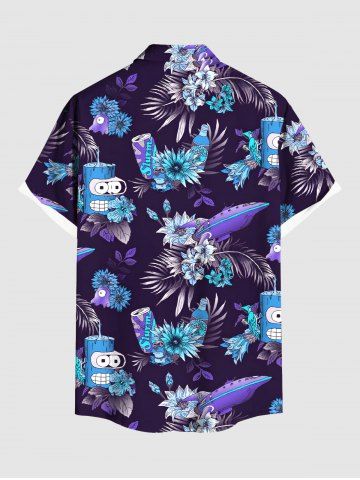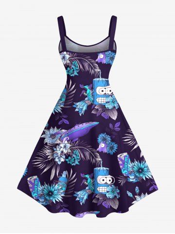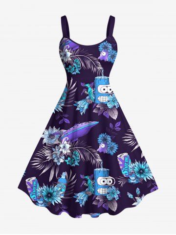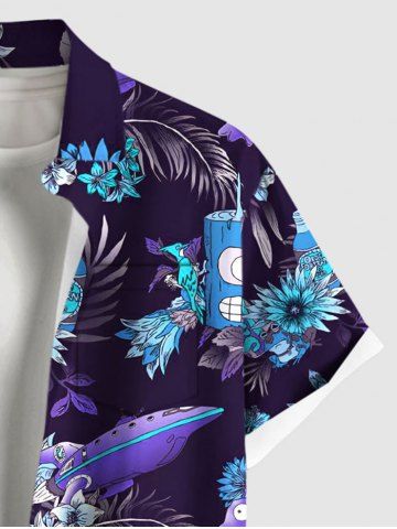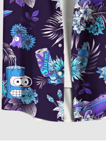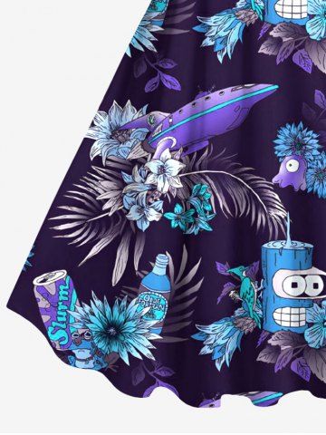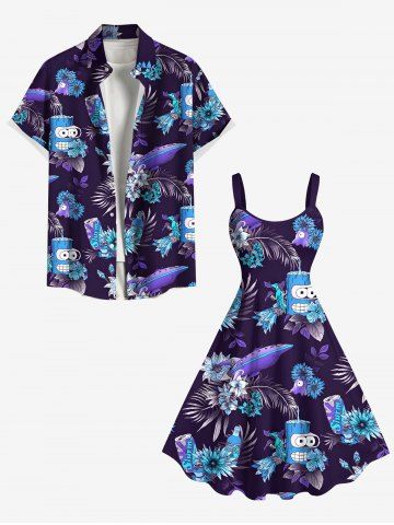 Matching Hawaiian Outfits > Submarine Tropical Leaf Hibiscus Flower Cartoon Juice Print Plus Size Matching Hawaii Beach Outfit For Couples