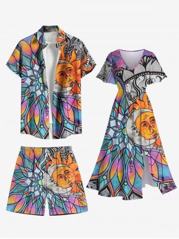 M*****n4Plus Size Colorful Ombre Dreamcatcher Sun Moon Colorblock Print Split Pocket A Line DressColor: MULTI-A Size: 4XGorgeous, vivid colours. It fits well, the fabric is soft, and it feels cool to wear