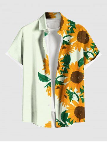Sunflower Print Plus Size Matching Hawaii Beach Outfit For Couples - White