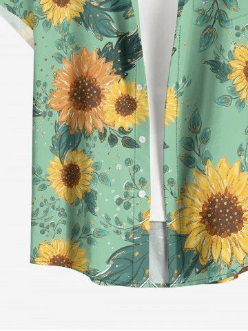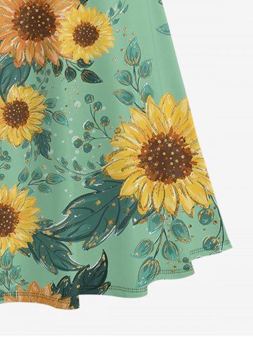 Sunflowers Leaf Oil Painting Print Plus Size Matching Hawaii Beach Outfit For Couples - Green