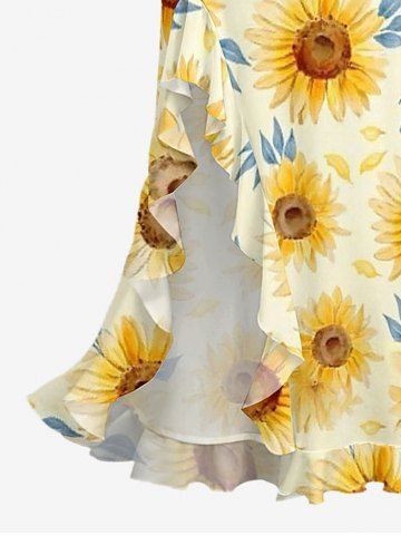 Sunflowers Leaf Print Plus Size Matching Hawaii Beach Outfit For Couples - Yellow
