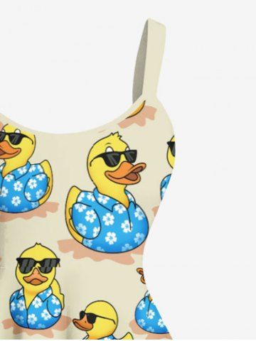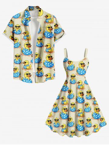 Sunglass Ducks Print Plus Size Matching Hawaii Beach Outfit For Couples - Beige