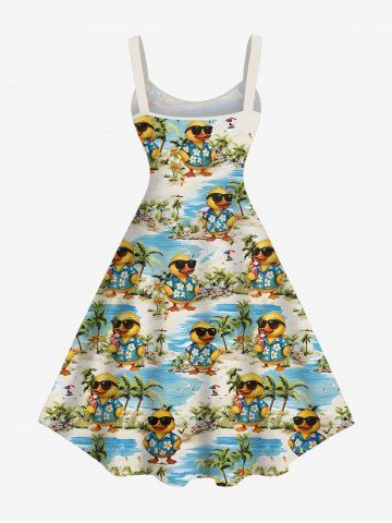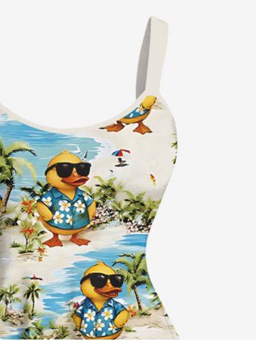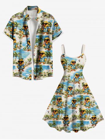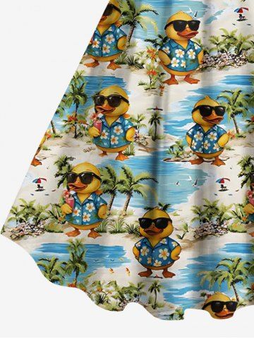 Matching Hawaiian Outfits > Sunglasses Duck Coconut Tree Seascape Print Plus Size Matching Hawaii Beach Outfit For Couples