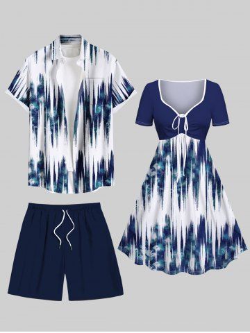 Matching Hawaiian Outfits > Tie Dye Ombre Light Wave Print Plus Size Matching Hawaii Beach Outfit For Couples