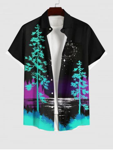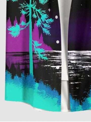 Tree Sea Moon Star Print Plus Size Matching Hawaii Beach Outfit For Couples - Black