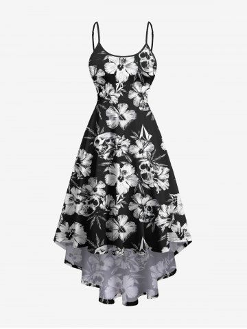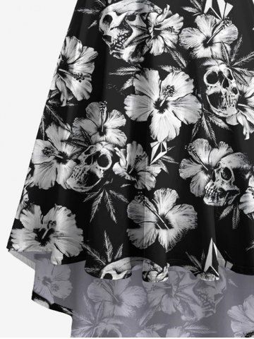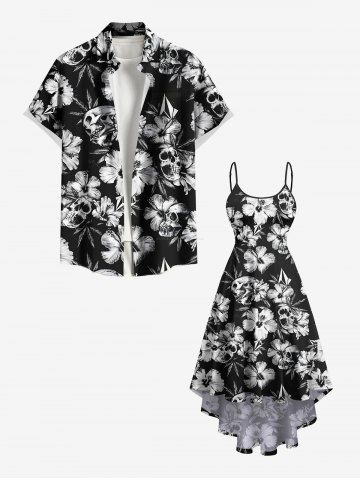 Matching Hawaiian Outfits > Tropical Flower Skulls Print Plus Size Matching Hawaii Beach Outfit For Couples