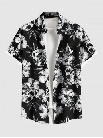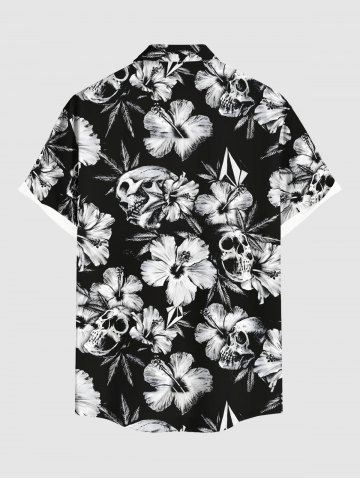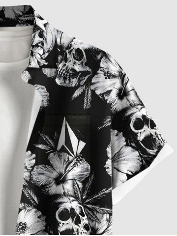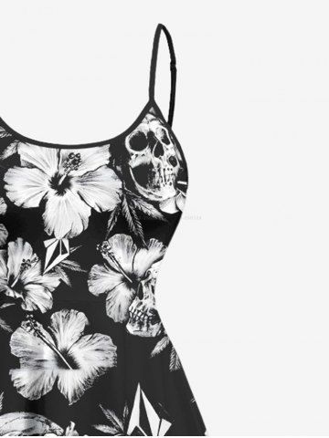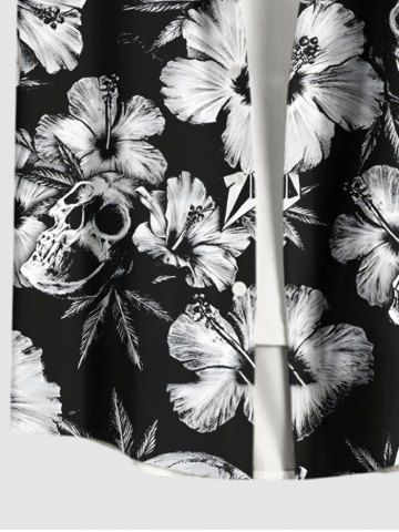 Tropical Flower Skulls Print Plus Size Matching Hawaii Beach Outfit For Couples - Black