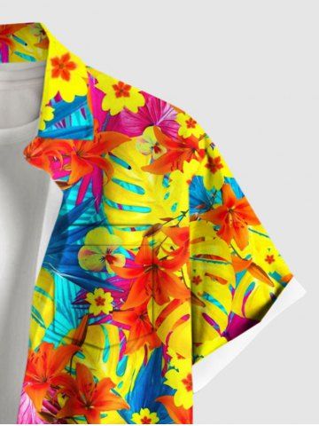 Tropical Flowers Leaf Print Plus Size Matching Hawaii Beach Outfit For Couples - Yellow