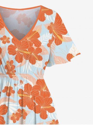 Tropical Hibiscus Flowers Print Plus Size Matching Hawaii Beach Outfit For Couples - Orange