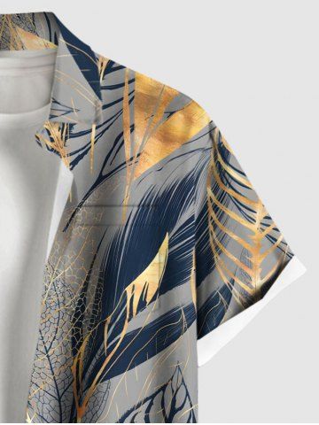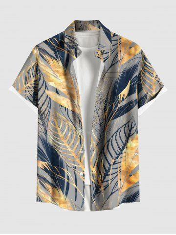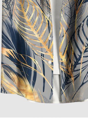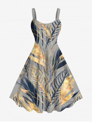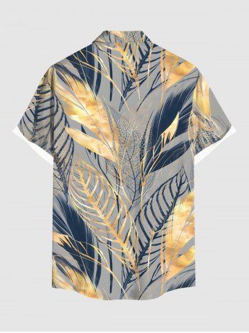 Tropical Leaf Feather Metallic Print Plus Size Matching Hawaii Beach Outfit For Couples - Gray