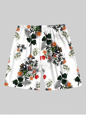Tropical Leaf Flower Print Plus Size Matching Hawaii Beach Outfit For Couples - White