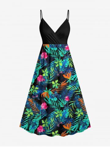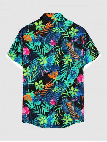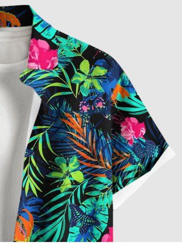 Tropical Leaf Flowers Print Plus Size Matching Hawaii Beach Outfit For Couples - Black