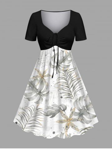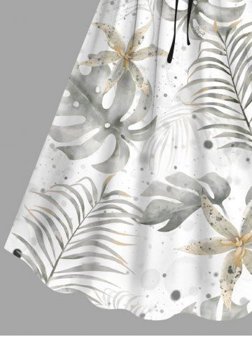 Tropical Leaf Flowers Print Plus Size Matching Hawaii Beach Outfit For Couples - White