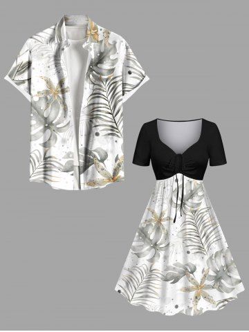 Matching Hawaiian Outfits > Tropical Leaf Flowers Print Plus Size Matching Hawaii Beach Outfit For Couples