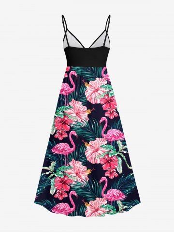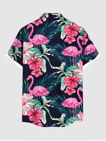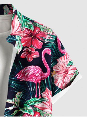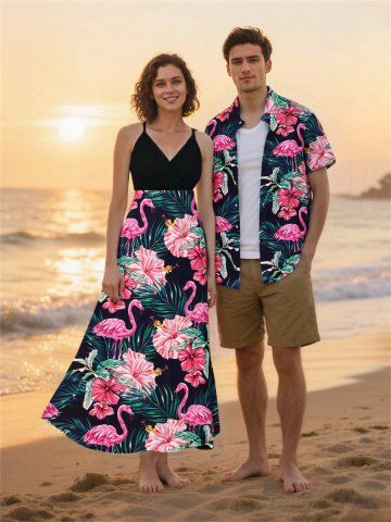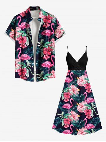 Matching Hawaiian Outfits > Tropical Leaf Hibiscus Flower Flamingo Print Plus Size Matching Hawaii Beach Outfit For Couples