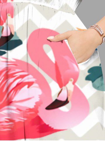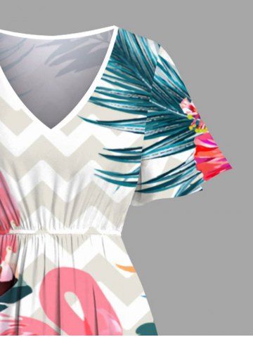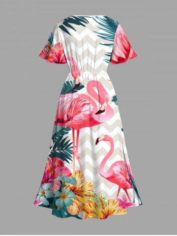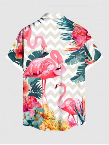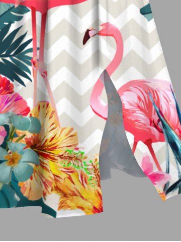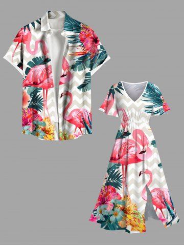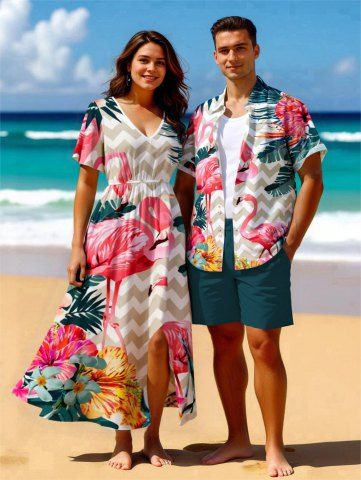 Matching Hawaiian Outfits > Tropical Leaf Hibiscus Flower Flamingo Zig Zag Print Plus Size Matching Hawaii Beach Outfit For Couples