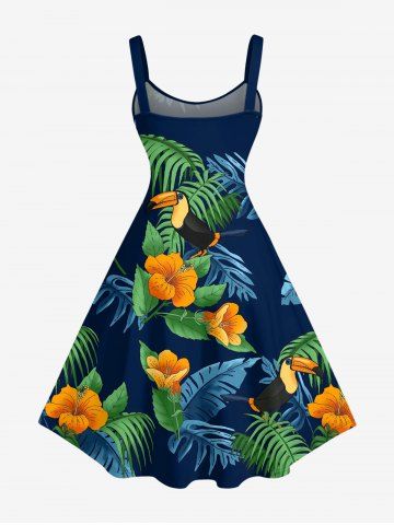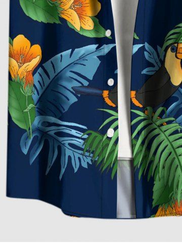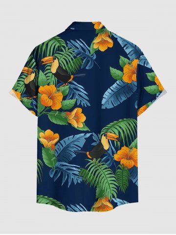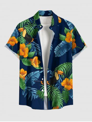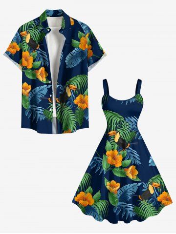 Matching Hawaiian Outfits > Tropical Leaf Hibiscus Flower Parrot Print Plus Size Matching Hawaii Beach Outfit For Couples