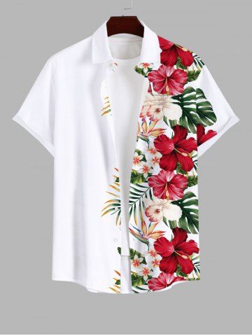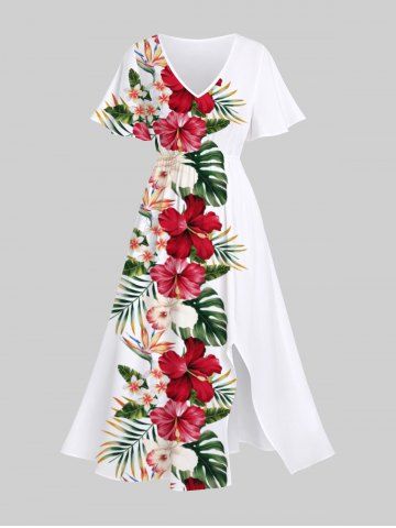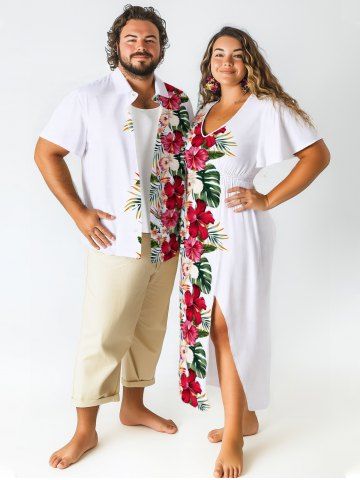 Tropical Leaf Hibiscus Flower Print Plus Size Matching Hawaii Beach Outfit For Couples - White