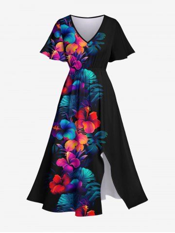 Tropical Leaf Hibiscus Flower Print Plus Size Matching Hawaii Beach Outfit For Couples