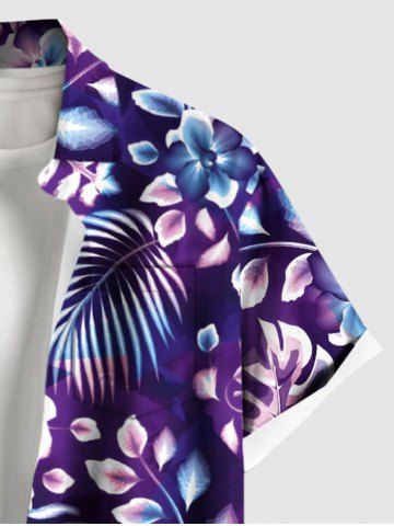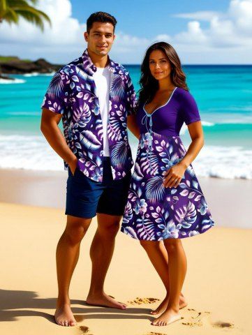 Tropical Leaf Hibiscus Flower Print Plus Size Matching Hawaii Beach Outfit For Couples - Purple