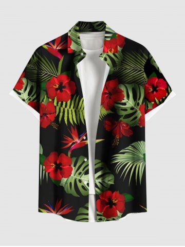 Matching Hawaiian Outfits > Tropical Leaf Hibiscus Flower Print Plus Size Matching Hawaii Beach Outfit For Couples