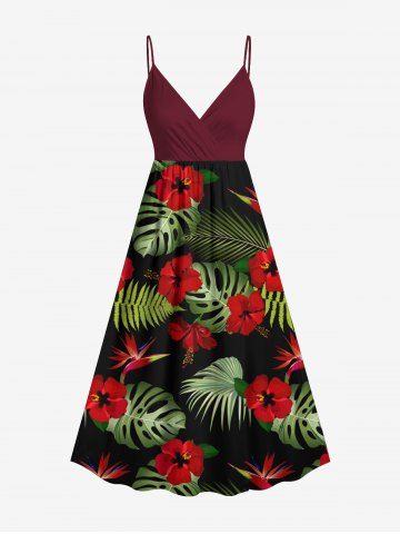 Tropical Leaf Hibiscus Flower Print Plus Size Matching Hawaii Beach Outfit For Couples - Red