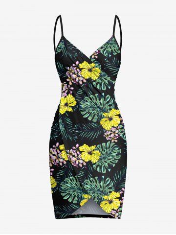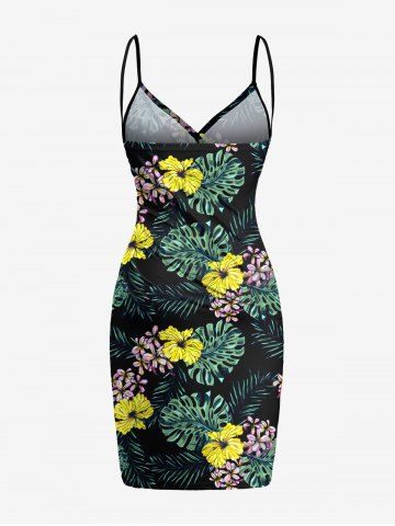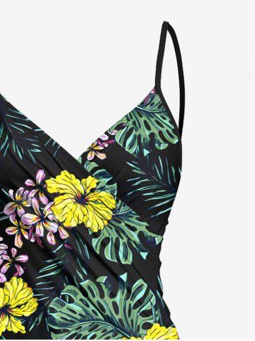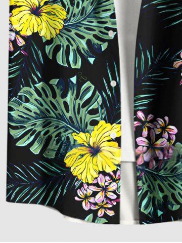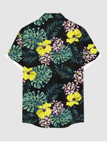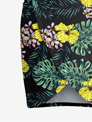 Tropical Leaf Hibiscus Flower Print Plus Size Matching Hawaii Beach Outfit For Couples - Black