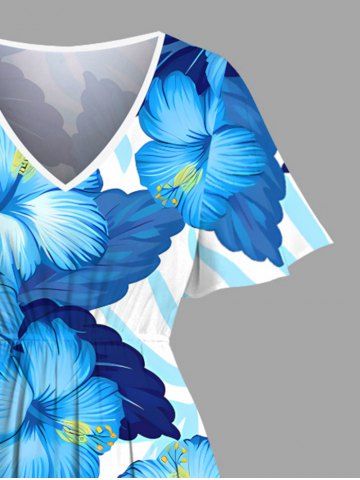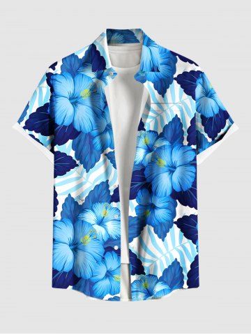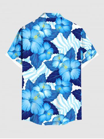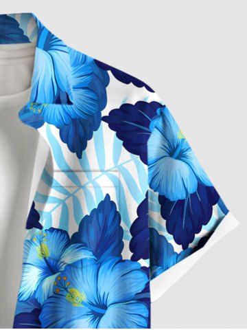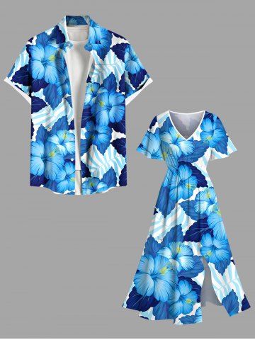 Tropical Leaf Hibiscus Flower Print Plus Size Matching Hawaii Beach Outfit For Couples - Blue