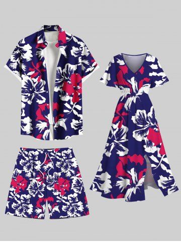 Matching Hawaiian Outfits > Tropical Leaf Hibiscus Flowers Print Plus Size Matching Hawaii Beach Outfit For Couples