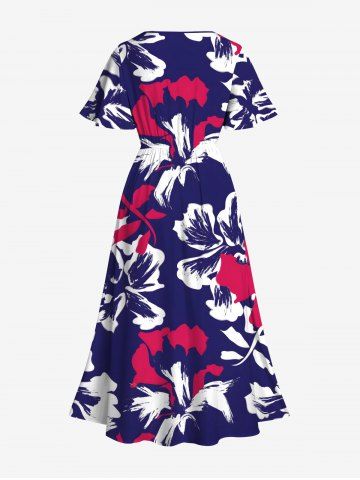 Tropical Leaf Hibiscus Flowers Print Plus Size Matching Hawaii Beach Outfit For Couples - Purple