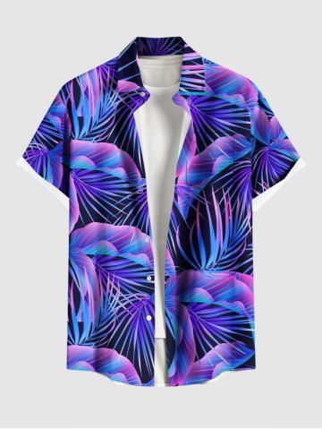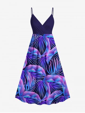 Tropical Leaf Print Plus Size Matching Hawaii Beach Outfit For Couples - Purple