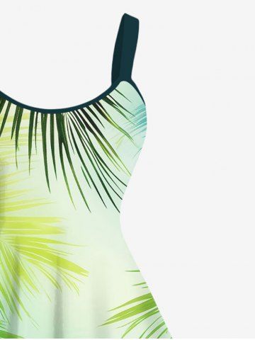 Tropical Leaf Print Plus Size Matching Hawaii Beach Outfit For Couples - Green