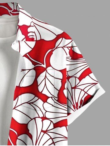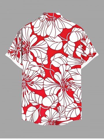 Tropical Lraf Hibiscus Flowers Print Plus Size Matching Hawaii Beach Outfit For Couples - Red