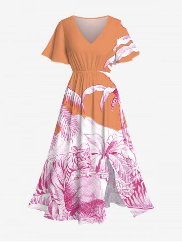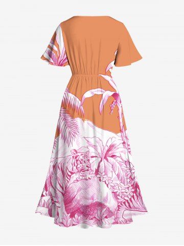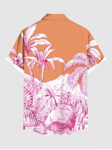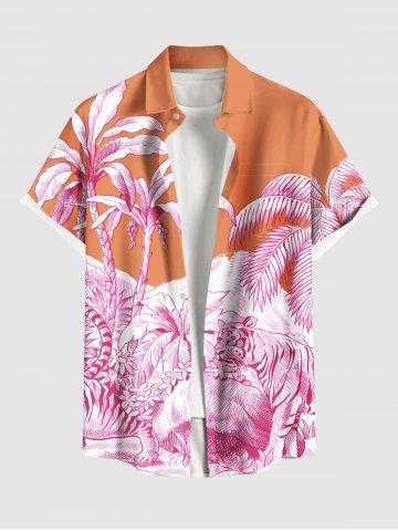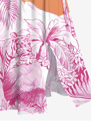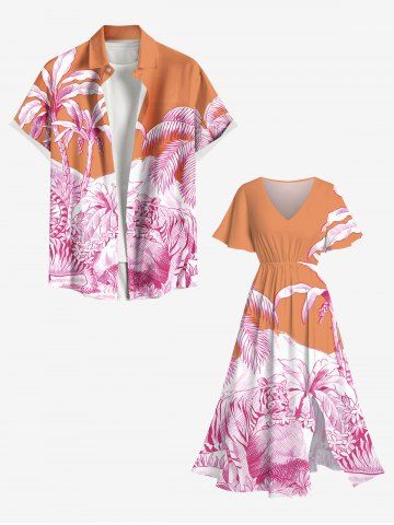 Matching Hawaiian Outfits > Tropical Plant Coconut Tree Leaves Jungle Tiger Print Plus Size Matching Hawaii Beach Outfit For Couples