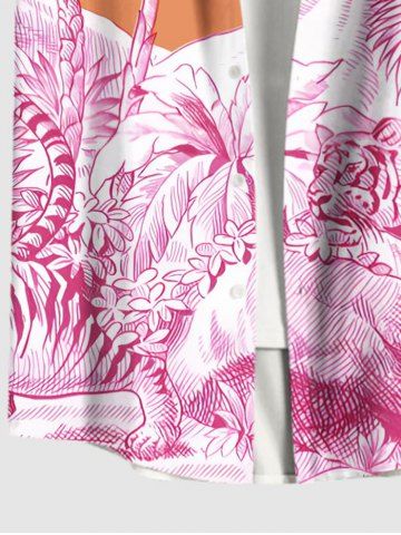 Tropical Plant Coconut Tree Leaves Jungle Tiger Print Plus Size Matching Hawaii Beach Outfit For Couples - Light Pink