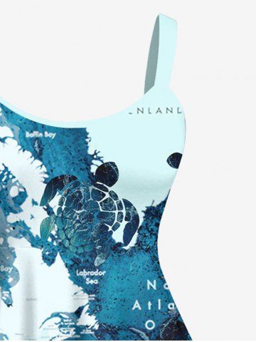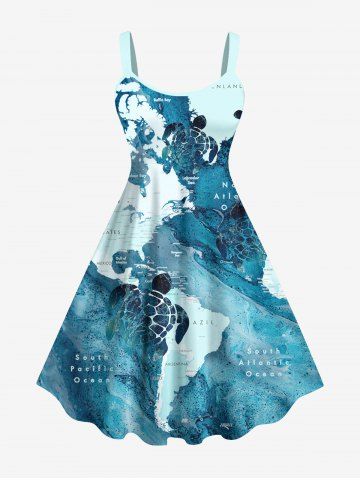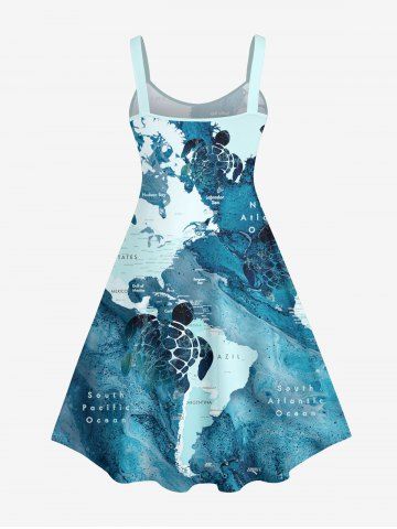 Turtle Blue Ocean Sea World Map Pattern Print Plus Size Matching Hawaii Beach Outfit For Couples - Multi-a