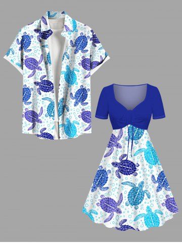 Matching Hawaiian Outfits > Turtle Bubble Print Plus Size Matching Hawaii Beach Outfit For Couples