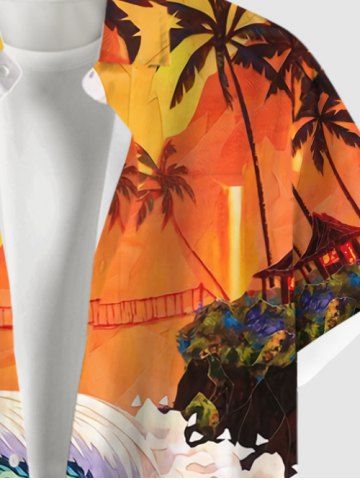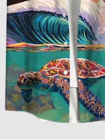 Matching Hawaiian Outfits > Turtle Sea Waves Sun Dusk Print Plus Size Matching Hawaii Sea Creatures Beach Outfit For Couples