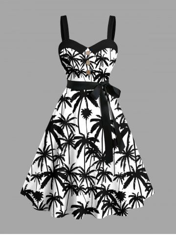 Matching Hawaiian Outfits > Two Tone Coconut Tree Print Plus Size Matching Hawaii Beach Outfit For Couples