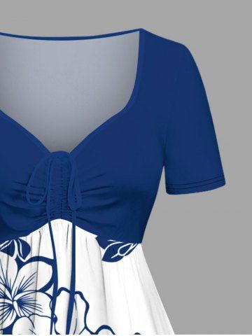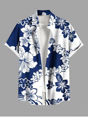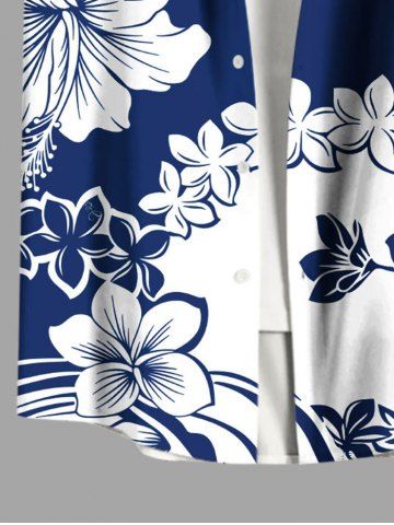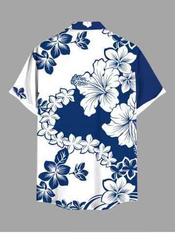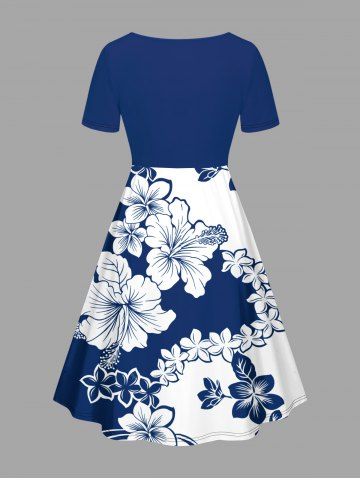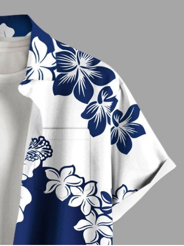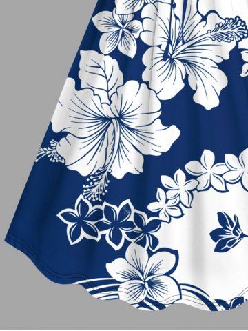 Two Tone Hibiscus Flowers Colorblock Print Plus Size Matching Hawaii Beach Outfit For Couples - Blue