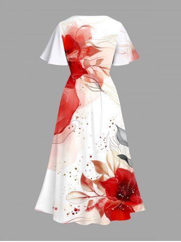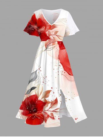 Watercolor Tie Dye Flower Leave Line Pattern Print Plus Size Matching Hawaii Beach Outfit For Couples - Red