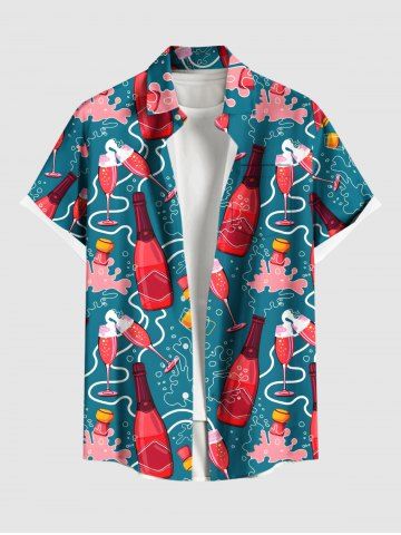 Wine Bottle Sea Print Plus Size Matching Hawaii Beach Outfit For Couples - Green