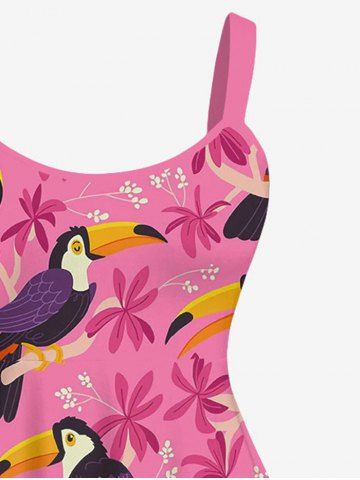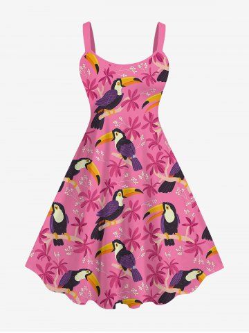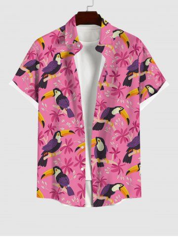 Woodpecker Floral Leaf Print Backless Dress and Button Pocket Shirt Plus Size Matching Hawaii Beach Outfit for Couples - Light Pink