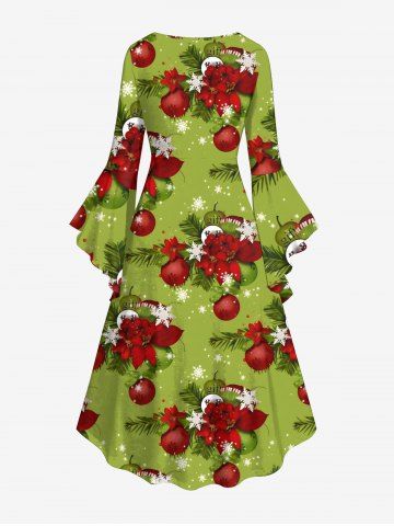 Christmas Ball Flowers Snowflake Print Plus Size Matching Outfit For Couples - Green