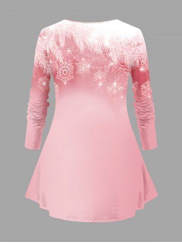 Christmas Ball Snowflake Hat Unicorn Candy Print Plus Size Matching Set - Light Pink