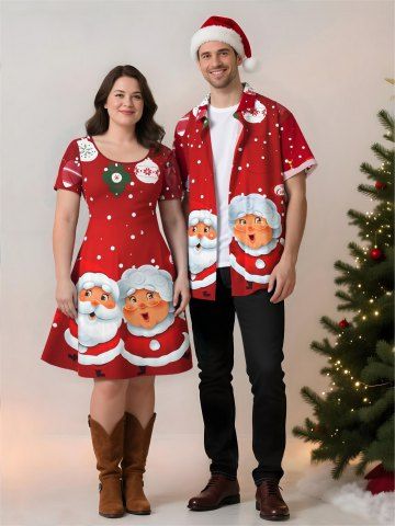 Matching Outfits > Christmas Ball Snowflake Santa Claus Print Plus Size Matching Outfit For Couples