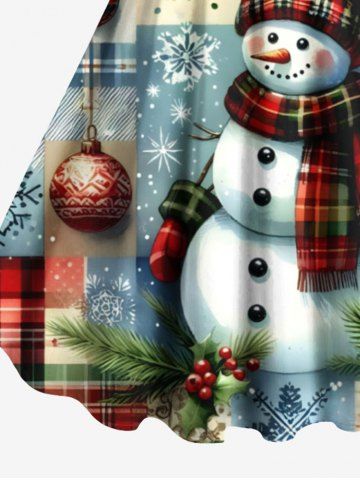 Christmas Ball Snowflake Snowman Plaid Print Plus Size Matching Outfit For Couples - Red