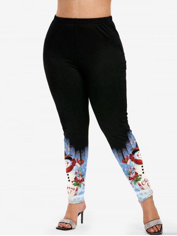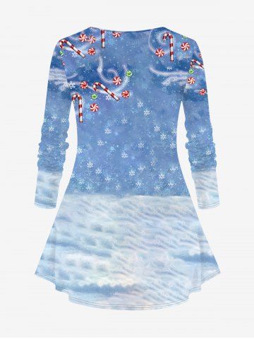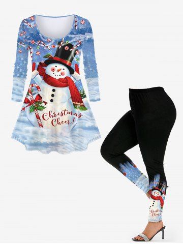 Christmas Candy Snowman Snowflake Print Plus Size Matching Set - Light Blue